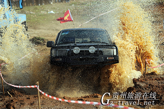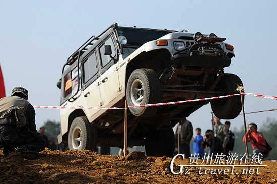 改装过的越野车通过飞车台进入精彩绝伦的比赛
