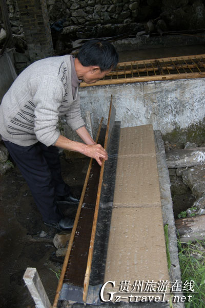 本站讯:贵州省长顺县是贵州造纸工业的重要发祥地,长顺县白云山镇翁贵村现在仍保留着古老的土法造纸作坊,建于明朝的造纸作坊被称为是蔡伦造纸工艺的“活化石”,并在每年的5月27日,全村都会祭奠蔡伦。2007年,翁贵古老的造纸术被选入贵州非物质文化遗产。