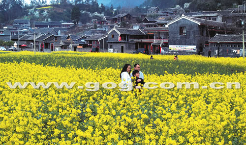 贵州瑞里侗乡油菜花开 姑娘结伴戏耍喜迎春来