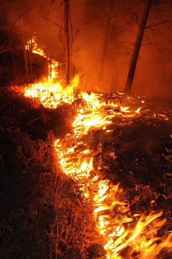 2009年2月25日晚,贵州龙里县龙架山国家森林公园火灾现场。