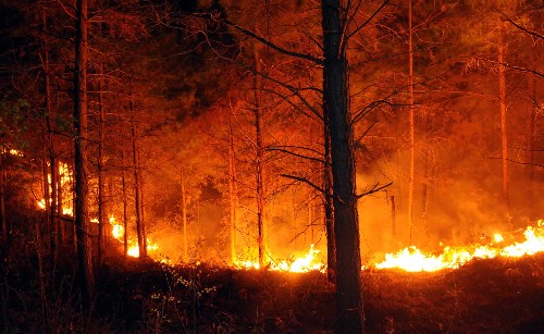 2009年2月25日晚,贵州龙里县龙架山国家森林公园火灾现场。