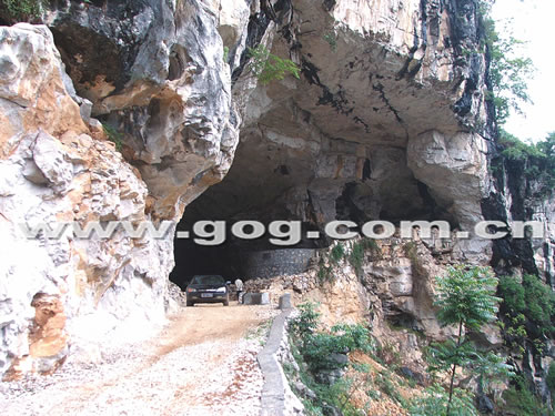 据当地群众介绍,他们没有费一炮一炸,就在这座喀斯特岩溶大山中轻松辟出一座长约300多米的宽阔的天然公路隧道,车辆出入畅通无阻。据记者进一步深入了解得知,原来这里有一个自然寨子名叫“穿洞”,主要因附近有座高大险峻的大山半山腰有一个洞而得名,穿洞里住着12户人家,每次出入大山,都是点着火把徒步从这岩洞中穿过,如不这样,就得翻越陡峭的高山。