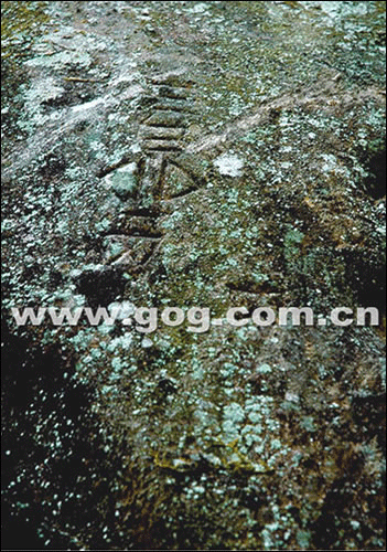 据三都水族自治县文物管理所所长梁卫民介绍,近日,该县开展文物普查时,在位于都柳江畔的都江镇大坝村境内发现有一处“水书摩崖石刻”文化遗迹,该遗迹摩崖离地约3米,在约3平方米的崖面上镌刻有“己、巳、寅、卯、酉、申、未、癸”等29个水族古文字,字符大小为10厘米至15厘米不等,记载历法的字符、笔画基本清晰可辨,镌刻年代不详,初步推测为清初至清中叶。水书摩崖石刻遗迹附近往北5公里上江坡有1731—1734年间修建的都江厅石城墙,城墙全长2000米,现称都江古城垣,以及都江“城乡义冢之坟墓”(1873年)碑文可证。