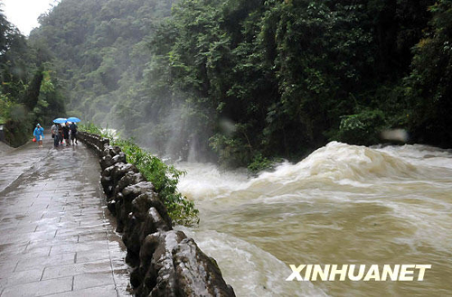 近日来,贵州省世界自然遗产地――荔波大小七孔景区连续降雨,虽然对交通有所影响,但也增加景区内瀑布、河流的水量,让这秀美的景区多了几份野性。