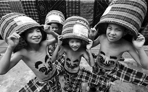 “雯当姆”是翁昂布依族人民从生产劳动嬉戏中演绎出的民间舞蹈,已有数百年的历史。“雯当姆”意为“矮人舞”,舞者在肚皮上画上夸张的五官,用箩筐当“帽”扣住上半身,下半身“穿”上土布衣服,一个个妙趣横生的“矮人”便诞生了。