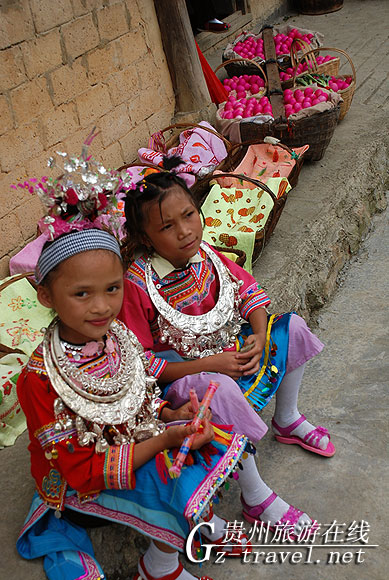 苗家小孩围着‘红鸡蛋’迟迟不愿离去。等待着客人们的到来。