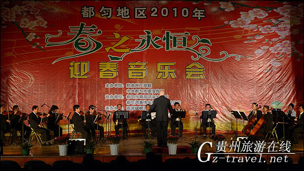 昨晚2010年迎新晚会在市政府会展中心拉开了帷幕,由黔南州工商联合会、都匀市委宣传部主办,鸿基房地产公司、都匀市商品混凝土公司、黔南州音乐家协会协办。节目在欢快的管弦音乐中进行,当晚节目汇聚了黔南州在省内外获奖的优秀音乐作品,出席晚会的有:黔南州工商联合会陈其主席,黔南州委,都匀市委宣传部主要负责人,黔南州音乐家协会主要负责人。