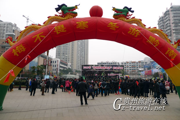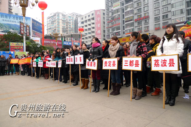 昨日下午,黔南州12县(市)长、旅游局局长汇集人民广场,在那里举行“梅不畏寒,冬游黔南”2012年“风情黔南畅冬游”启动仪式,出席仪式的有主管旅游的副州长及各县(市)旅行社负责人、星级宾馆负责人。副州长蒙院芬宣布启动仪式开始。