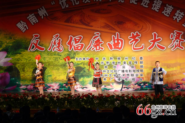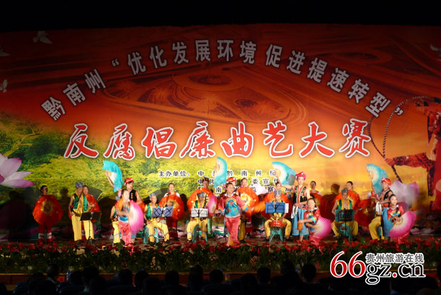 贵州旅游在线讯 由黔南州纪委、黔南州监察局、黔南州委宣传部、黔南州电影电视局、黔南州文艺家联合会等多家单位联合主办的“黔南州反腐倡廉曲艺大赛”在都匀市会展中心拉开帷幕,参赛的有黔南州十二个县市、文艺团体及公、检、法、司和纪检委等多家单位参赛。