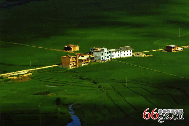 六硐坝子位于六硐河流域9平方公里范围内,属山水田园风光。从景区的河头草滩出来,便可游览六硐坝子。这坝子属喀斯特地形地貌中典型的河道冲积平原,坝子四周山势雄伟,巍峨挺拔,高耸入云。六硐河从坝子中川流而过,坝子上分布有毛南族村寨,河道纵横,阡陌错落。坝子气候冬无严寒,夏无酷暑。春天麦苗青绿,菜花金黄,一派色彩缤纷的万千气象;秋天整个坝子一片金黄,处处是丰收景象,特别是春夏云雾缭绕之际,从山顶俯视,一片雾海,煞是奇观。