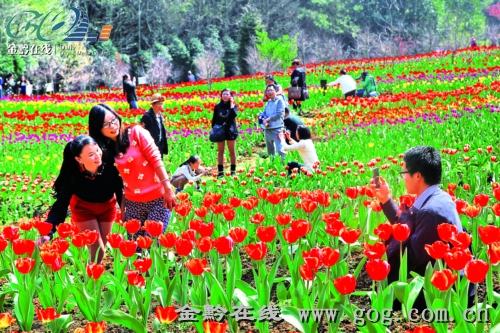 近日,独山森林公园10万余株郁金香正值盛花期,五颜六色的花朵争奇斗艳,呈现出一派姹紫嫣红的美丽景象,吸引了全国各地游客前往赏花和摄影。独山县从荷兰引进18个品系的郁金香花进行繁育,克服了纬度低、管理难度大、技术要求高等困难,成功引种、培育了郁金香花卉基地。(贵景网发)