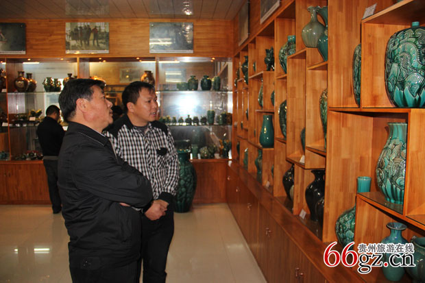 傅迎春局长(左一)参观牙舟陶