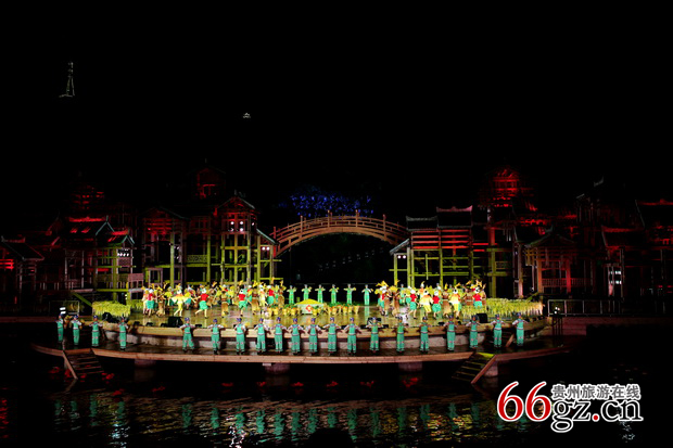 贵州旅游在线讯 7月2日晚,“好花红”大型山水实景演出在惠水涟江上演。这是历史以来惠水县策划、包装、打造的一台最大型的山水实景演出,整台演出阵容庞大,气势恢宏,震撼人心。“好花红”大型山水实景演出分为“序幕”和《春暖涟江水》、《情牵“六月六”》、《金秋送香风》、《山水田园梦》四个篇章及尾声《好花红》。无论舞美设计、灯光设计、服装设计还是音响设计,都达到了很高水平,堪与《印象刘三姐》媲美。