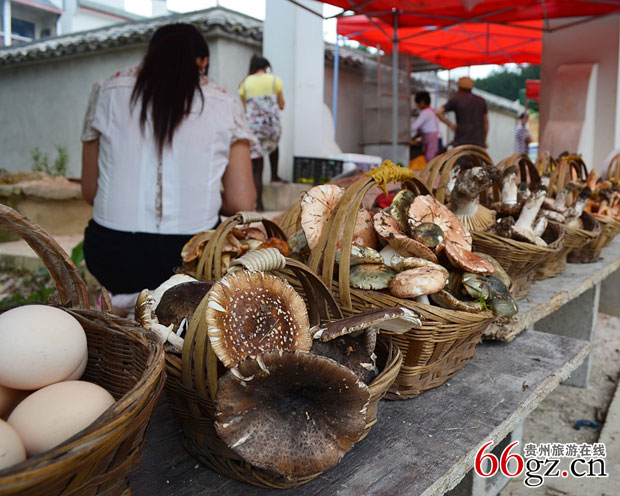 贵州旅游在线讯 时下,正是野生菌大量上市之时,位于贵州省龙里县谷脚镇观音村210国道旁的唐房,是远近闻名的“菌子街”,距贵阳仅20公里。野生菌资源极为丰富。谷脚镇唐房依山傍水,环境优美,生态保护较好,境内10多万亩森林里野生菌生长茂盛,菌类品种多样,青头菌、牛肝菌、块菌、奶浆菌、羊肚菌、香菇、竹荪、猴头菌、鸡油菌等质佳味好,在市场上颇受消费者青睐。