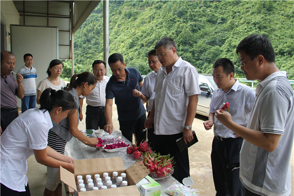 据了解,罗甸县是我国火龙果的原生地,目前,已发现15个野生资源。从上世纪90年代开始,贵州省果蔬站、果树研究所开始在罗甸县境内进行火龙果引种试种,先后培育出“紫红龙”“粉红龙”和“晶红龙”等优良品种。罗甸县气候环境独特,是火龙果的优势种植区域,经济效益高,火龙果产业已列为贵州省委、省政府1号文件。罗甸凭借独特的气候、土地资源优势,采取“政府推动、项目扶持、群众参与、部门联动”的方式,制定了精品火龙果中、长期发展规划,奠定了火龙果产业化、规模化、规范化种植基础。目前,完成示范园建设2万余亩,覆盖7个乡镇69个村,受益农户达1.24万户5.14万人,种植面积达6.02万亩,投产2万余亩,总产量9000吨,实现产值1.4亿元,亩产值达7000元,已经成为全国最大的火龙果种植基地。