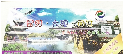 此外,在许多城市的贴吧上,已有买家晒出“昆明、大理、丽江云南6天5晚超值单人游”的“云南旅游券”,券上标明门市价为2480元,“龙头旅游企业”昆明溢彩国际旅行社有限公司将提供全程服务。