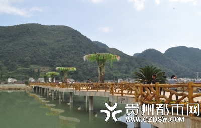 10月17日下午,与会代表来到平塘县平舟镇京舟村观摩该县的康体养生建设项目。记者看到,项目现场建设了古色古香的乡愁记忆馆、弧形文化广场、注有二十四节气及十二生肖的石刻长廊,同时还有广阔的湖区和湖桥。此外,记者看到当天有众多游客来到项目现场参观游览。记者也发现,项目周边自然风光神奇秀美,山水景色千姿百态,布依民居依山傍水,民族风情古朴浓郁。