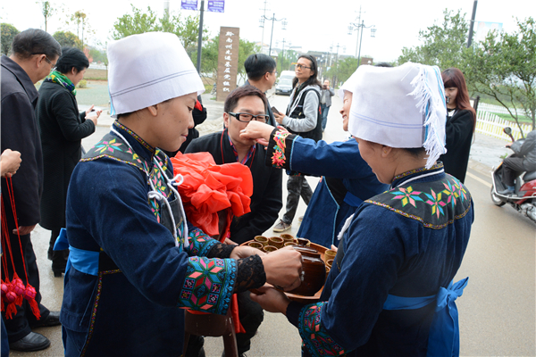 4月1日,著名策划人、导演、央视微电影频道副总编辑胡适之等一行9人走进布依民歌《好花红》的发源地——惠水县好花红村进行美丽中国微电影采风。品布依美酒、观布依堂屋、听布依民歌、领布依风情,热情好客的好花红人民用自己淳朴的方式欢迎远道而来的客人。