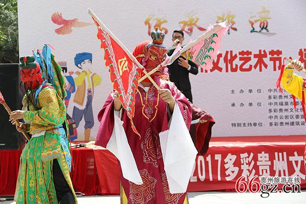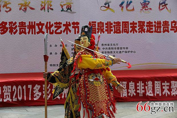 在贵乌路社区中大国际广场,来自福泉的演员们为社区居民带来了阳戏《霸王别姬》、灯夹戏《穆桂英挂帅》和原生态舞蹈《表哥表妹来跳月》、《苗族盛装》等歌舞,而流传于当地28式“三丰太极”的优美和古朴则将大家带到了太极养生古城福泉的意境。