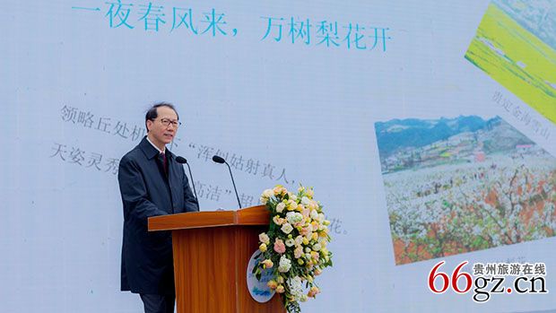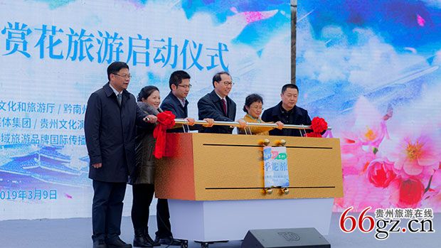 启动仪式上,贵州省文化和旅游厅厅长张玉广从贵州春季旅游资源、文化活动、美食特产等方面推介了贵州春季旅游。他介绍:贵州的春季,百花绽放,春色无边。贵州的春季,有独特的韵味。今年,全省各地策划推出了300多项文旅活动,为赏花游注入了文化魂,提升游客的体验度。百里杜鹃景区将举行祭花神仪式;黔西县将举办跳花坡旅游文化节;湄潭县将举办茶艺大赛、万人品茗、“茶王”争霸赛等系列活动;仁怀市将举行茅台品酒文化节,让游客在赏花同时体验到茅台文化、红色文化、盐运文化。兴义万峰林乡愁集市将乡愁文化与赏花相结合。贵州的春季,有生动的趣味。安顺市山里江南旅游休闲度假区将“江南元素、屯堡文化”融为一体,在景点“幸福花田”内增加儿童乐园、木屋烧烤吧等旅游业态,吸引游客前往。贵阳市乌当区羊昌花画小镇,全年推出真人CS求生作战活动,与野炊烧烤、拓展培训、亲子活动相结合,增加赏花乐趣。贵州的春季,有人间的美味。春茶、花酒、辣子鸡、酸汤鱼、青岩玫瑰糖、镇远花酒等特色美食风味独特。他盛情邀请海内外游客来到贵州,畅游花海、共享春色。