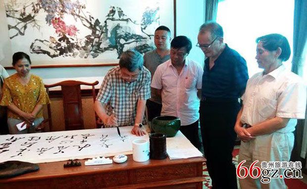 在考察调研过程中,专家门鉴赏了三十年来,每个月出版一本著作的“出书大王”叶永烈的科普作品。学习了同济大学建筑设计图谱。著名生态记者、科普作家罗万雄讲习了“生态旅游与健康”、“获取健康的秘决”科研课题。图为中医学科学家、贵州省原副省长马文骏在为贵阳科普作家协会理事会单位建设的三都县“生态康养红心弥猴桃旅游园”题词。