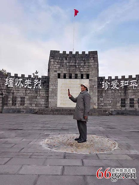 著名记者、地理科学家、科普作家罗万雄在独山深河桥抗日文化园调研。孟迋奎 摄