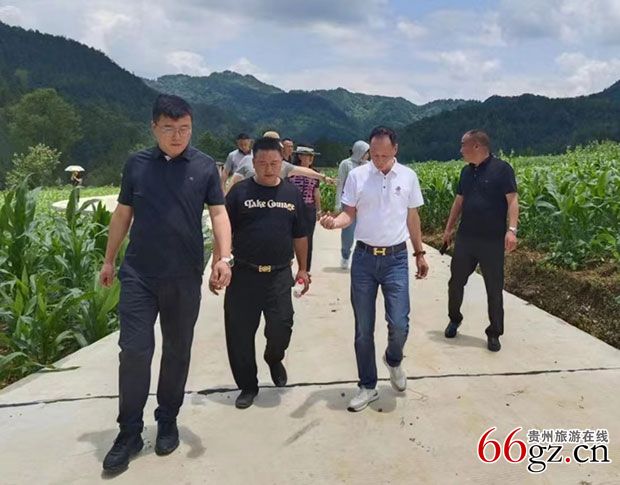龙里县洗马镇兰予书记、张楠镇长,和龙场村梁泽书支书陪同陈焕鑫董事长现场调研考察。隆婷婷 摄