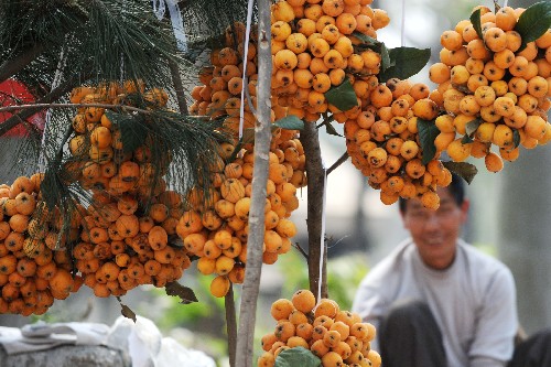 2009年3月22日,兴义市下五屯镇果农在果园边卖枇杷