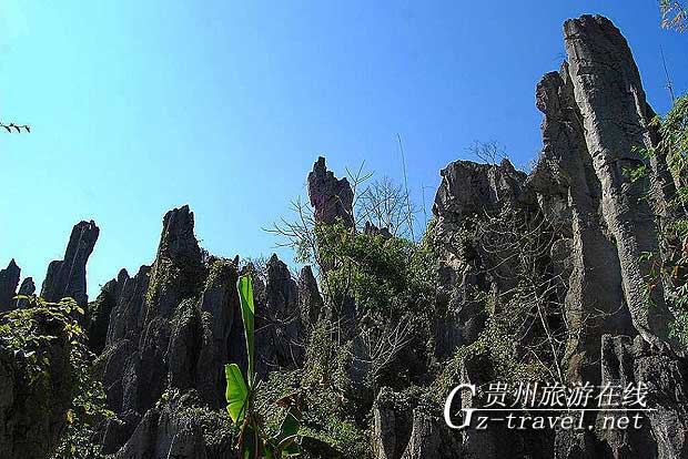 泥凼石林,位于兴义城南部,长达20公里,总面积约3万余亩。位于烟波浩渺的万峰湖畔,是万峰林中的一个盆景。石林区比较集中的有风坡弯、戴家坝、小寨等处。石林呈东北--西南走向的长条形,长15公里,宽1-3.2公里,面积近6.7平方公里,为距今2亿年前后形成的水平状薄层灰岩,经大自然鬼斧神工雕琢成的锥状和叶片状石林。石林单个石峰最高20米,一般高10米,最低8米。这里,集中和散落型的石林与峰林相交融。其中的陇戛石林景观独特,它与著名的云南路南石林相比,有以下三个特点:一是林天透空,数万平方米集中成片的石林,酷似一座傲然挺立了亿万年的"石头城";二是自然露面成林,酷似一群婀娜多姿的"少女";三是石林刚健,细条、片薄、穿孔多,造型奇特,错落有致