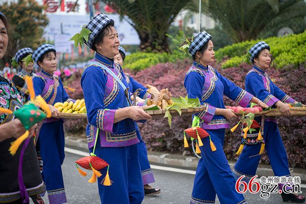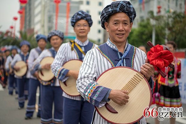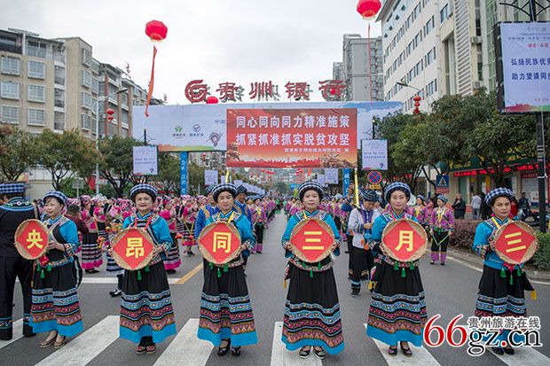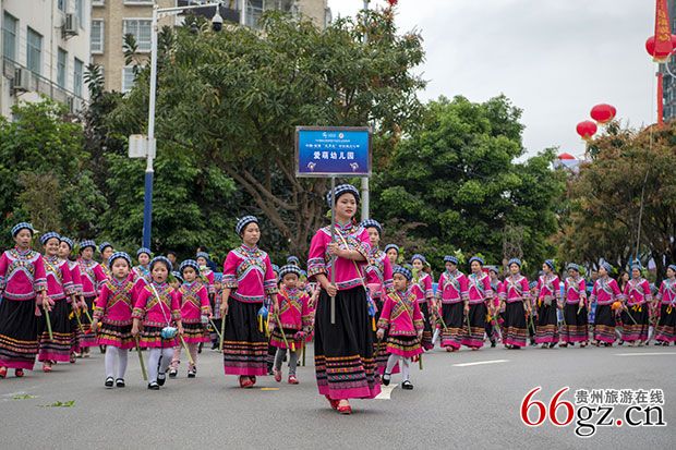 当天,活动在来自望谟县各地30余支方队巡演中拉开序幕,各方队身着布依服饰,手拿糠包,通过歌声、舞蹈、乐器等方式展示了布依族的文化和民俗,绚丽的服饰和热情洋溢的舞蹈,让人赏心悦目。