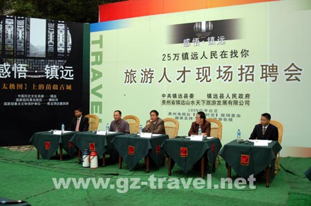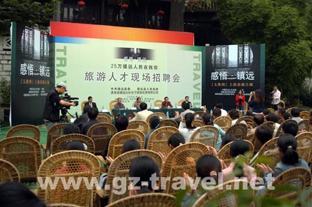 本站讯 9月28日,由中共镇远县委县政府与贵州省镇远山水天下旅游发展有限公司联合举办的“25万镇远人民在找你”旅游人才现场招聘会在贵州电视台《经济时空》的直击下如期举行。