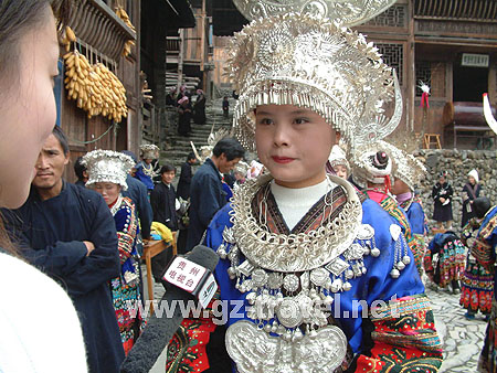 苗族姑娘接受贵州电视台采访乡村旅游给她们带来的好处