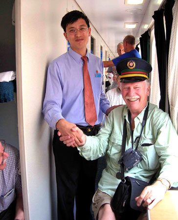 经过10几个小时的旅程,老外们与列车工作人员建立了感情,主动提出与大家合影留念。