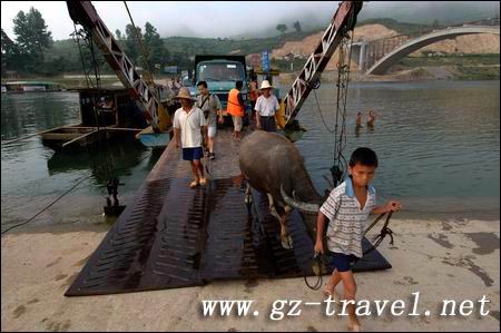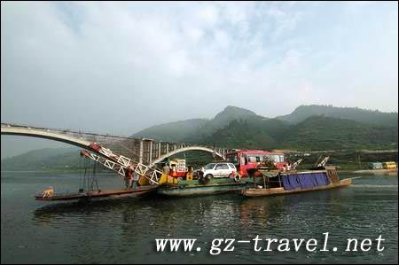 凯里到镇远必经过清水江,在台江的施洞至施秉的马号段,由于没有公路大桥,来往的车辆一直是采用轮渡过江。该轮渡1984年建成至今已有21年的历史,江水宽度一百余米,是贵州现存的最后的轮渡。