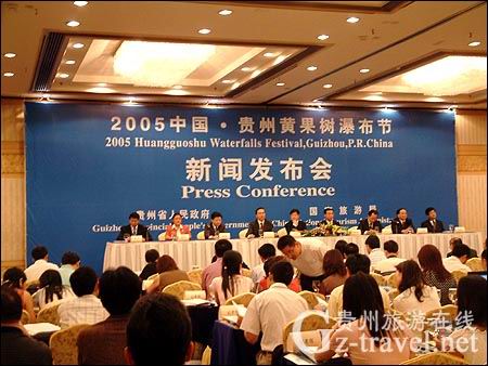 “贵州最适宜人类居住,民族文化非常多彩,贵州这个地方在我们看来真的是一块宝地,大家想想这个“贵”字,把它拆开来看,就是“中国的一个宝贝”这个意思。”贵州省委常委、宣传部部长李军在《2005中国·贵州黄果树瀑布节新闻发布会》如此说到,拉开了2005贵州在粤旅游推荐的帷幕。新闻发布会7月12日上午在广州中国大酒店召开,出席会议的有贵州省委副书记王富玉,贵州省委常委、宣传部部长李军,贵州省政府副省长蒙启良,贵州省安顺市委书记陈海峰,贵州省宣传部副部长姚远,贵州省旅游局局长杨胜明,贵州省招商局局长石超,贵州省安顺市人民政府市长慕德贵,广东省旅游局副局长杨荣森等相关领导和两地媒体。会上两地领导分别回答了记者的提问。