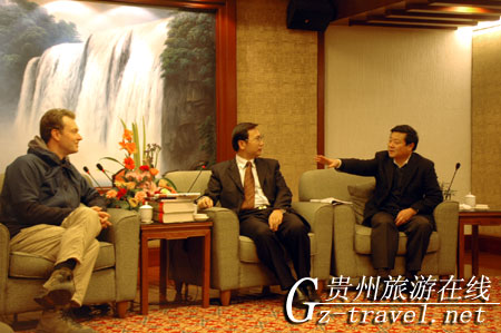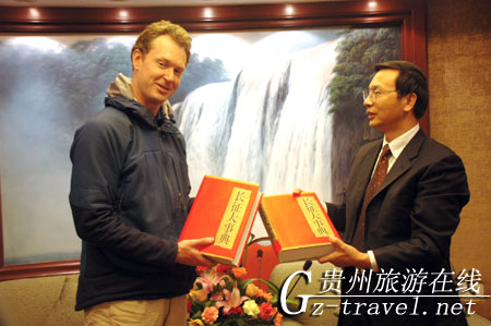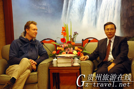 李爱德向李军部长介绍了这次徒步红二方面军长征线路的详细情况,李军部长对他们这种不畏艰辛,不惧困难、弘扬长征精神,推介红色旅游、重走长征路的行为深表敬意,同时希望李爱德能参加今年的贵州旅游形象大使评选,李爱德愉快的接受了李军部长的建议。