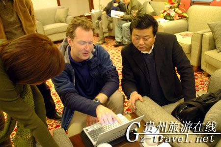 李爱德向旅游局副局长傅迎春介绍他们的新长征网站