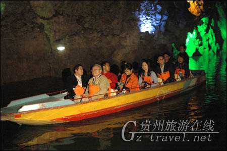 考察的第一天,日本买家团参观了黄果树瀑布后,顾不上休息,马不停蹄来到西线旅游的第二站——龙宫风景名胜区。日本客人乘着游船进入龙宫这个世界最大的水溶洞,对着千姿百态的石钟乳连连称奇,不停拍照留恋。田原将宏先生说,在日本绝对享受不到像这样乘着小船在溶洞中游玩的情景,他说回去以后,一定会通过媒体把龙宫介绍给日本游客,他相信日本朋友一定会喜欢上这个水上乐园。