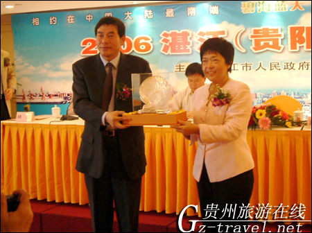 4月11日,来自祖国大陆最南端海滨城市-湛江的旅游“大篷车”,沿渝黔湛高速抵达贵阳。湛江市政府赵平副市长率旅游、文化、宣传部门及湛江各县(市)政府分管领导、旅游局负责人,主要旅行社、饭店、景区负责人以及女子军乐队、高桩醒狮队等120多人组成的代表团在贵阳展开为期2天的旅游推介和区域合作活动。为开拓泛珠三角区域合作,整合旅游资源,推动两地旅游的合作发展,两市政府于12日上午在贵阳举行了旅游推介会,签署了旅游发展合作协议,就开拓泛珠三角区域合作的山海旅游新品牌迈出实质性步伐,省、市有关领导出席了签约仪式。