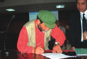 “贵州旅游亲善大使”吉川团十郎先生昨日上午来到贵州大学,与贵大的学子们进行交流。在与贵大师生的交流中,吉川先生除倾诉了他十余次贵州之旅的感想以及对贵州的深厚情谊之外,还当场在贵大填写了贵州旅游形象大使选拔赛的报名表。