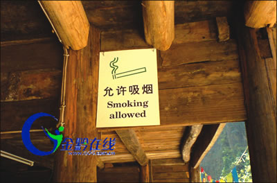 据游客罗先生介绍:他带孩子到都匀四方滩游玩,却发现景区内一木屋里高高挂着一块“允许吸烟”的牌子,年幼的孩子从来在森林中和木房里都只看到禁止吸烟的警示牌,对“允许吸烟”这样的牌子出现在森林中的木房里大感惊讶,要求他解释“为什么”。罗先生也觉得奇怪,便向景区工作人员询问。但工作人员却回答“允许吸烟”牌子已经挂了很久,从来没有人过问,觉得他是多管闲事。