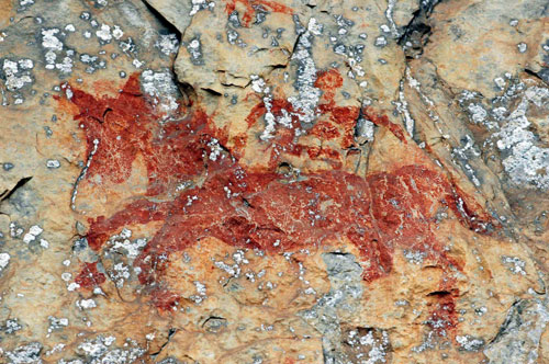 今年以来,文物工作者在贵州省关岭布依族苗族自治县和贞丰县交界的花江大峡谷陆续发现了众多岩画遗迹,这些古代岩画遗迹系战国晚期至唐宋年间贵州先民濮人和僚人的体育壁画。其中“马马岩壁画”特色显著,岩画呈赤铁色,图案为赛马图。花江大峡谷在古代为夜郎国属地。