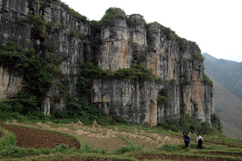 10月28日在贵州省关岭布依族苗族自治县普利乡下瓜村拍摄的“马马岩壁画”遗迹。