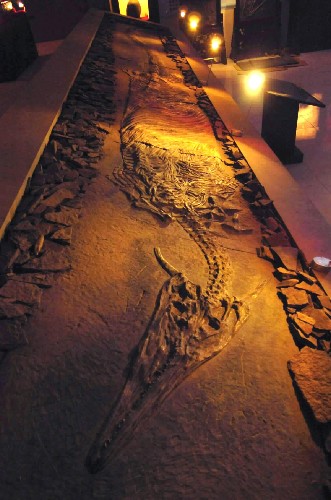这是博物馆内展出的长角“新中国龙”化石。