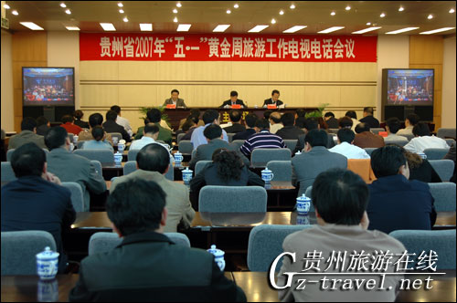 本站讯 4月17日下午,贵州省委省政府召开全省电视电话会议,全面安排部署“五一”黄金周旅游工作。会议由省政府副省长蒙启良主持,省委副书记王富玉出席会议并讲话,省旅游局、省公安厅、省交通厅、省建设厅、省卫生厅、省工商局、省质监局、省食品药品监管局等部门结合各自工作实际,就做好2007年“五一”黄金周假日旅游工作进行了安排部署。王富玉副书记在讲话中要求:要强化旅游安全,规范旅游市场,抓好整脏治乱,提高服务质量,树立良好形象,着力抓好市场,用良好的工作作风,确保黄金周各项工作落到实处。让广大游客满意在贵州。