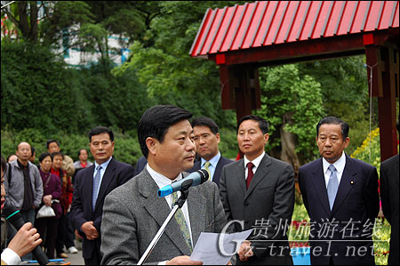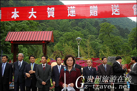 4月28日下午,日本众议员、日本全国旅行协会会长二阶俊博一行在黔灵公园向贵阳市政府赠送大贺莲种苗。副省长蒙启良,省政府副秘书长吴跃,贵阳市市长袁周,及省市相关部门负责人,日方代表参加此次仪式。