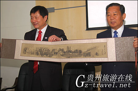 4月30日,日本众议员,日本全国旅游业协会会长二阶俊博一行在省有关部门领导的陪同下,对贵州大学进行访问并演讲。