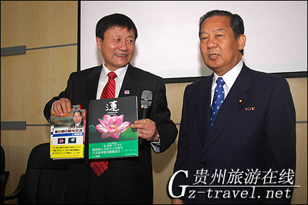 二阶俊博先生向贵州大学校长陈淑平回赠二阶俊博撰写书籍及礼品