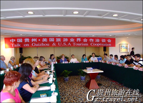 由国家旅游局驻纽约办事处特别邀请美国东部地区部分旅游代理商一行19人,在8月28号至9月1号考察了我省贵阳、安顺和黔东南地区之后,与我省旅游局和我省国际旅行社相关负责人进行互动交流洽淡。