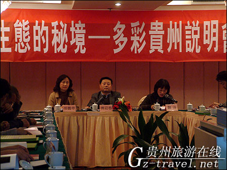 贵州省旅游局副局长傅迎春(中)、贵州省旅游局市场处处长张鹏华(左)